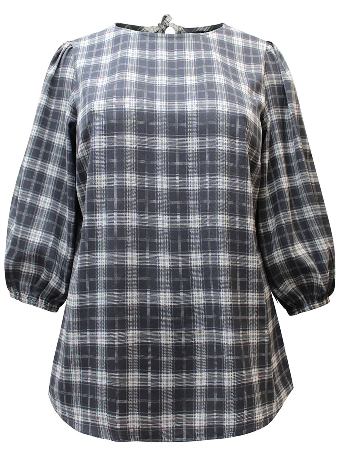 GREY Check Print Blouson Sleeve Top Size 16 – 18