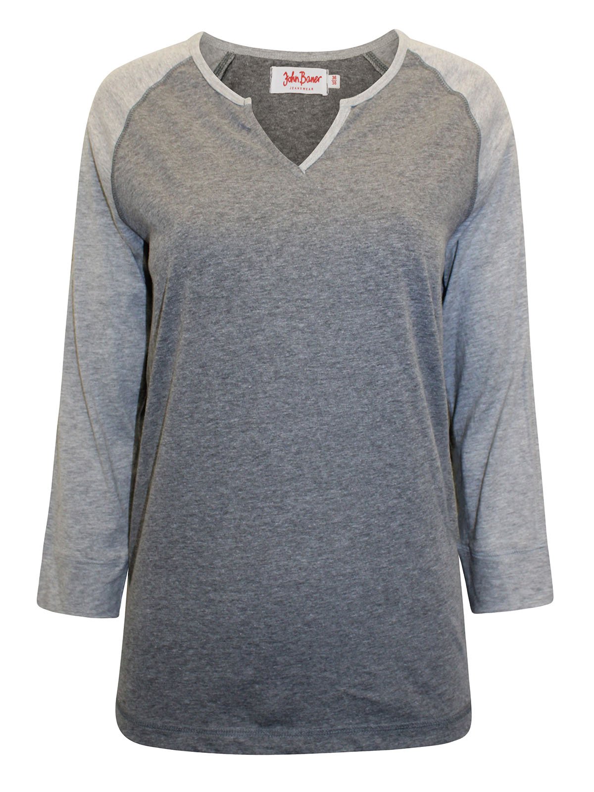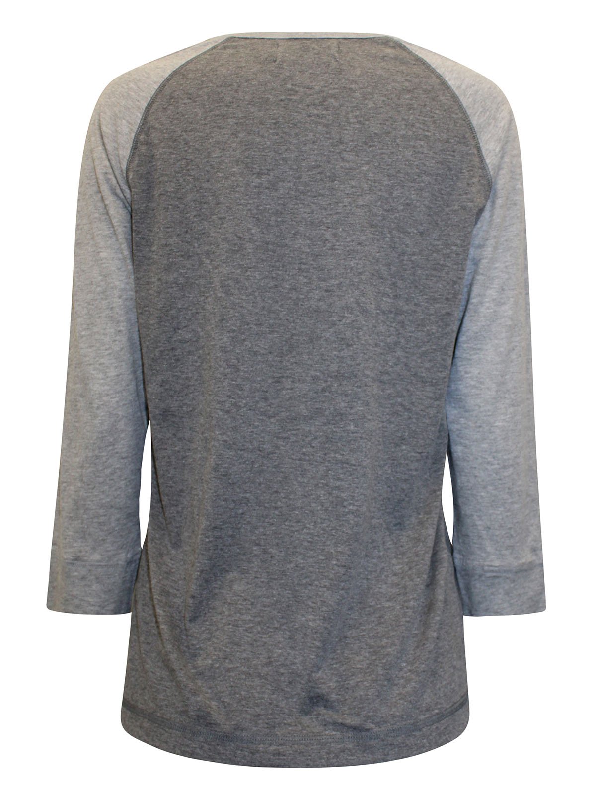 Practical yet cute, this grey raglan T-shirt is a perfect staple for your wardrobe. Featuring a notch neckline and flattering 3/4 length sleeves.