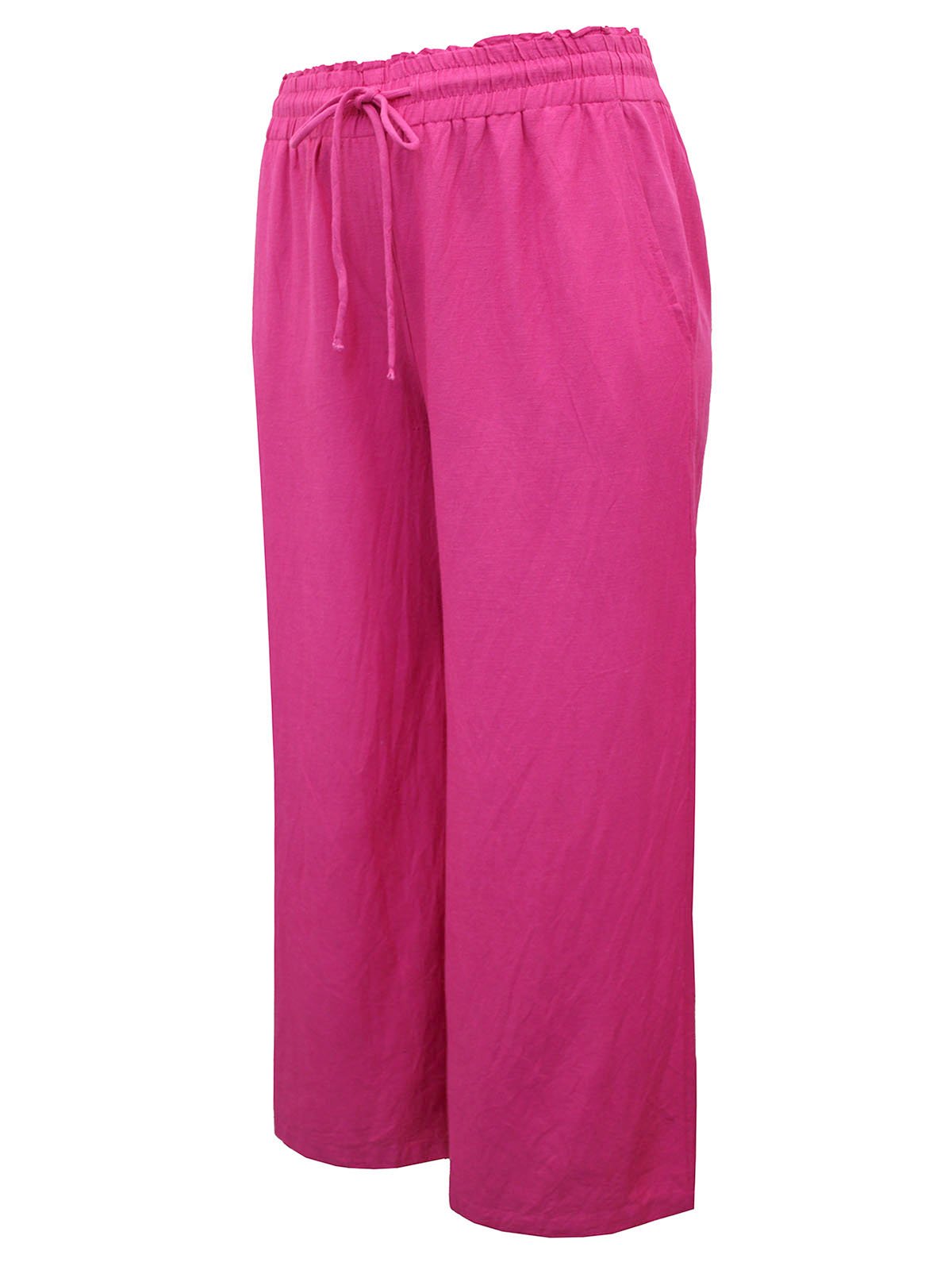 HOT-PINK Easy Care Linen Blend Wide Leg Trousers Size 24 – 30