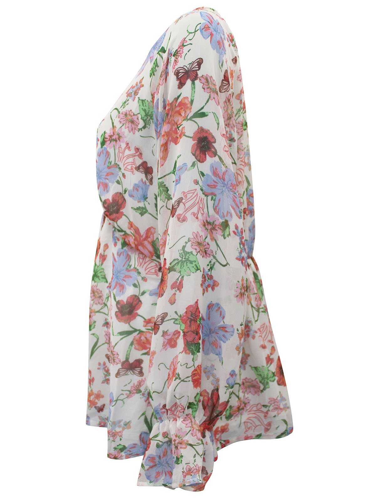 IVORY Floral Print V-Neck Long Sleeve Chiffon Blouse Size 16 – 30