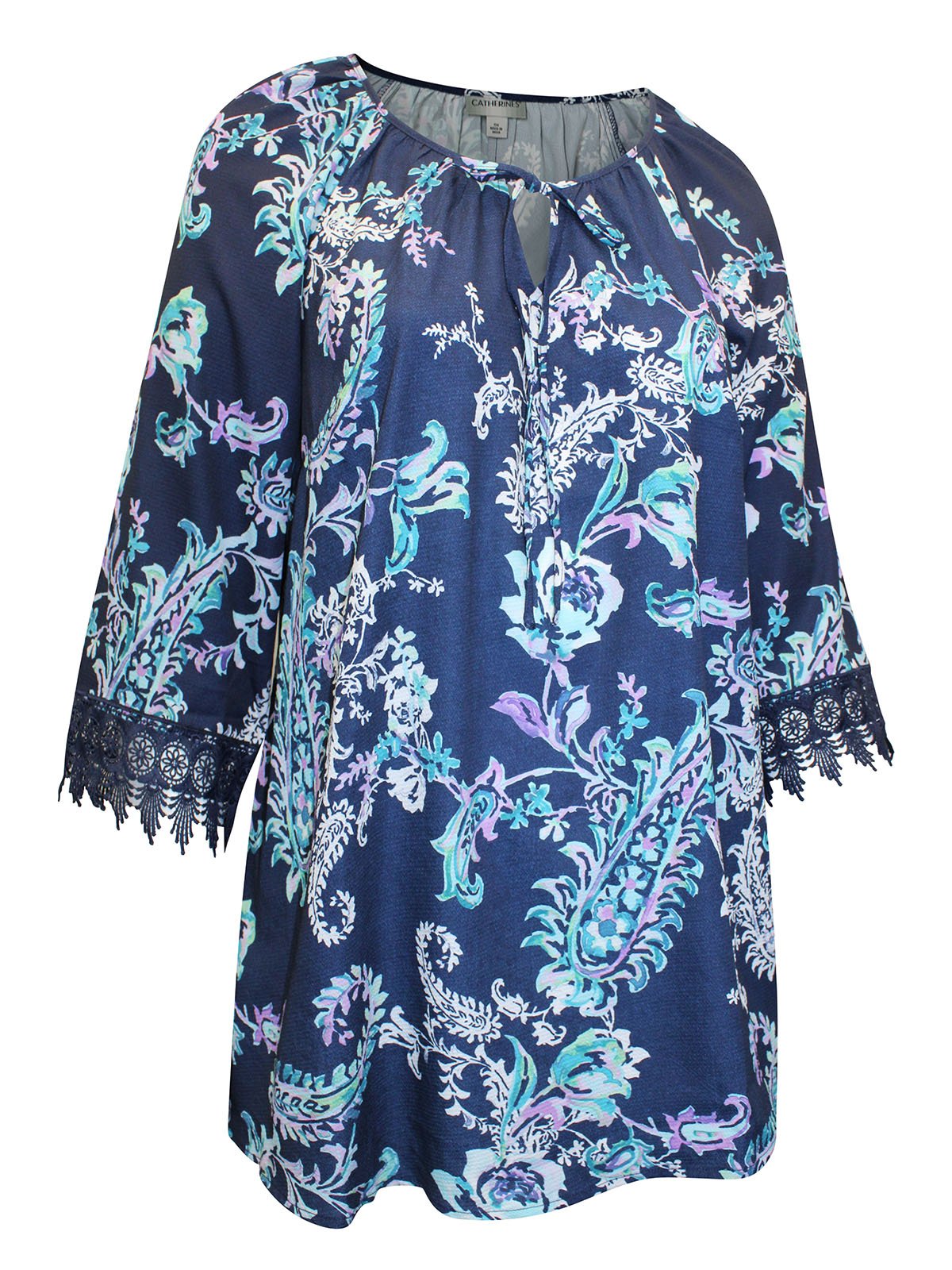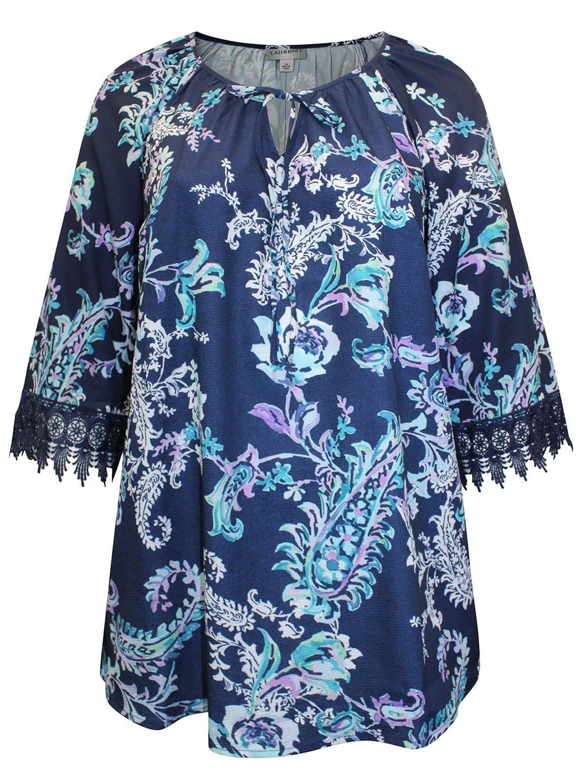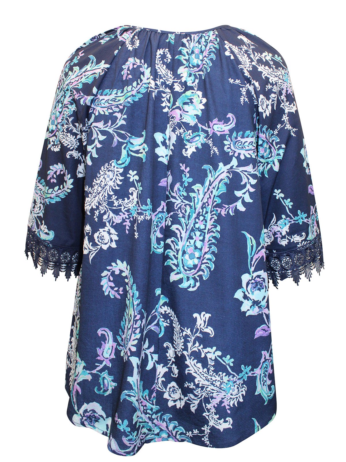 Crochet Trim Peasant Blouse – Navy Floral PaisleyÂ