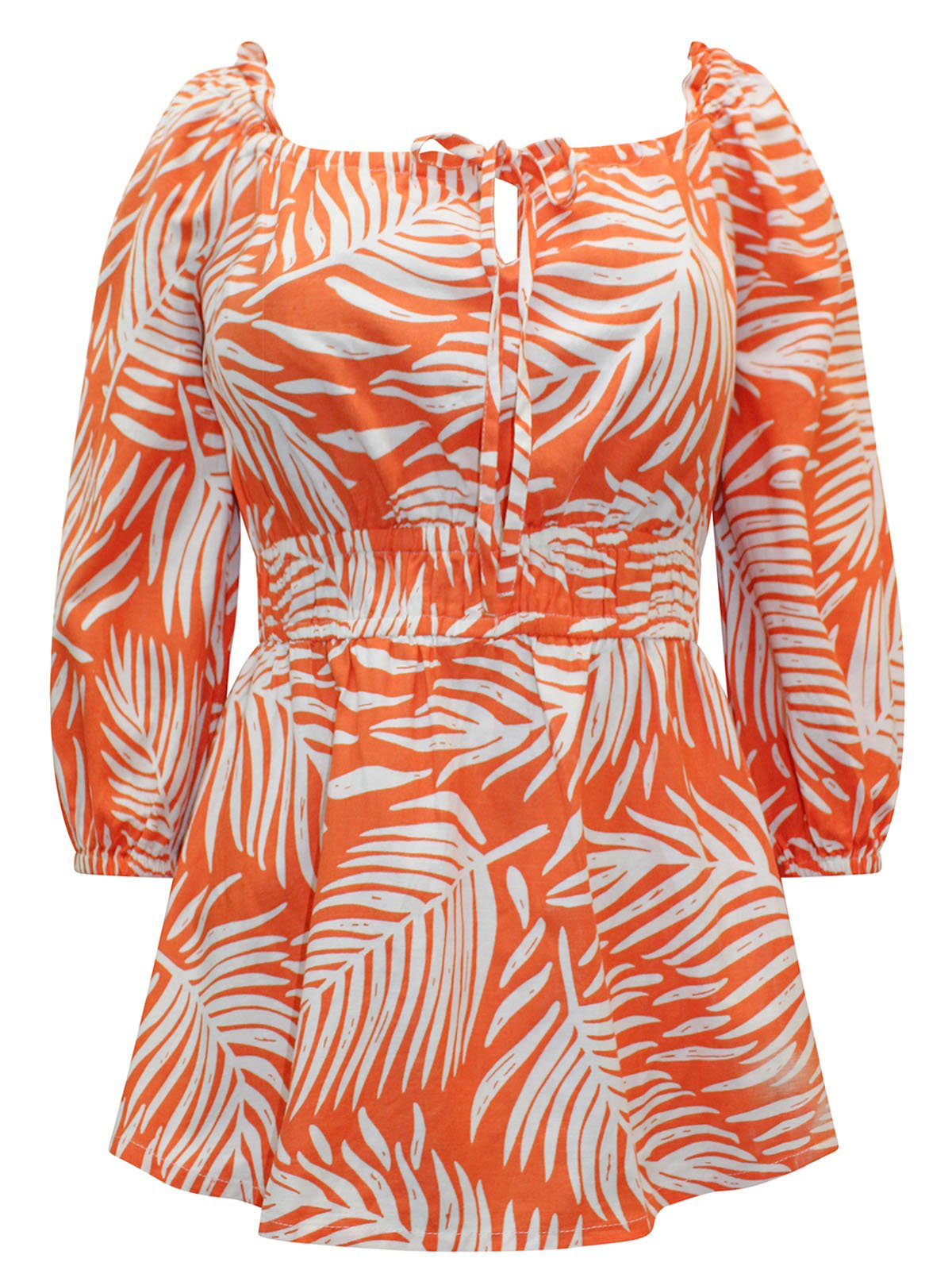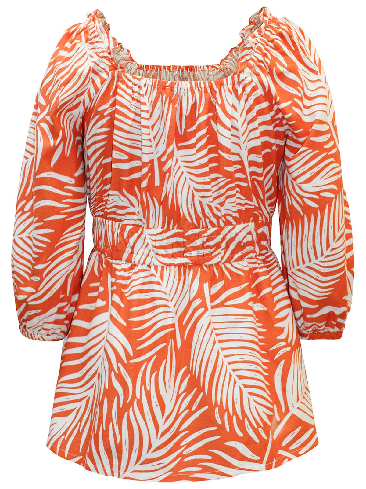 ORANGE Linen Blend Print Square Neck Top Size 10 – 22