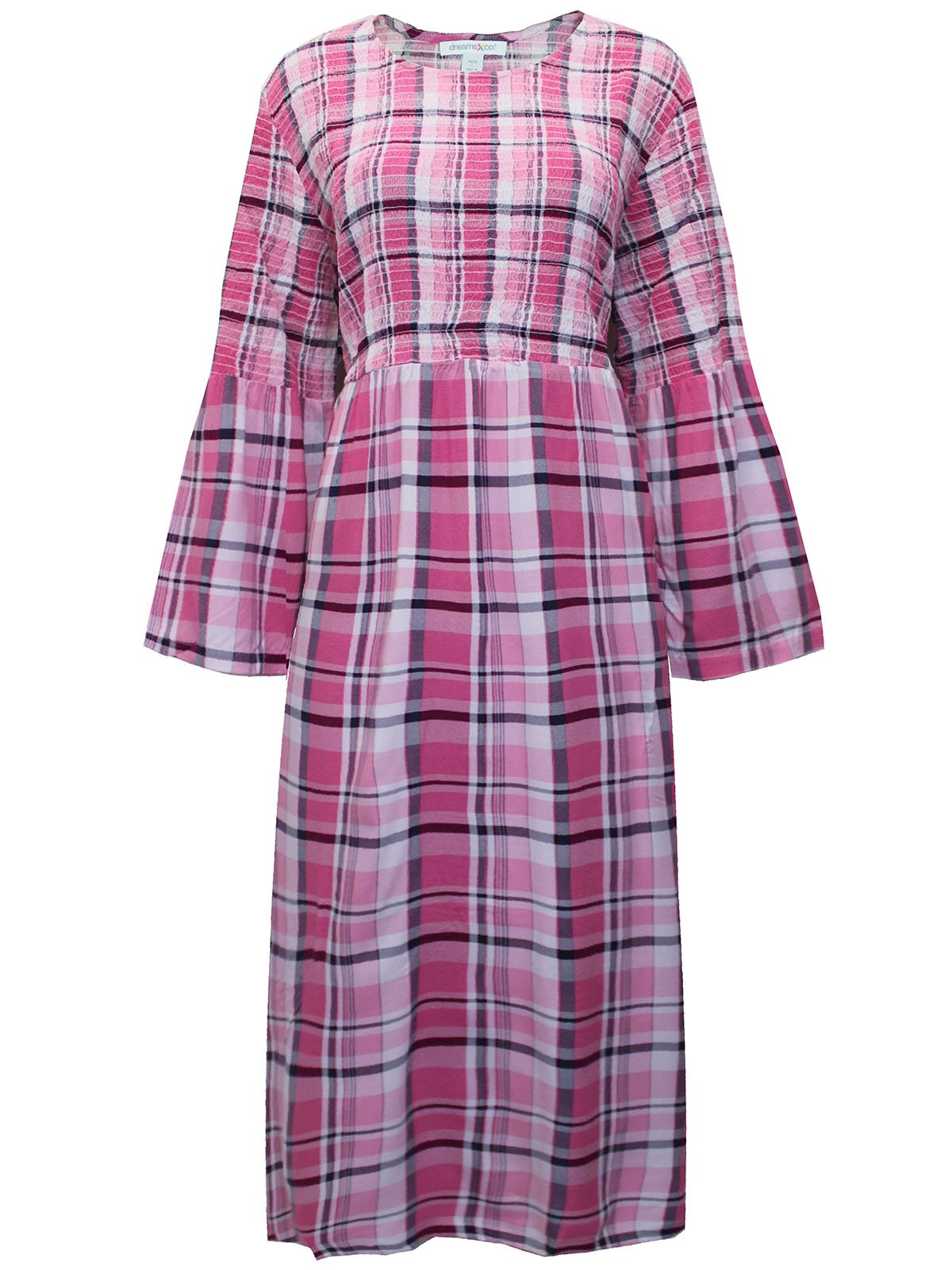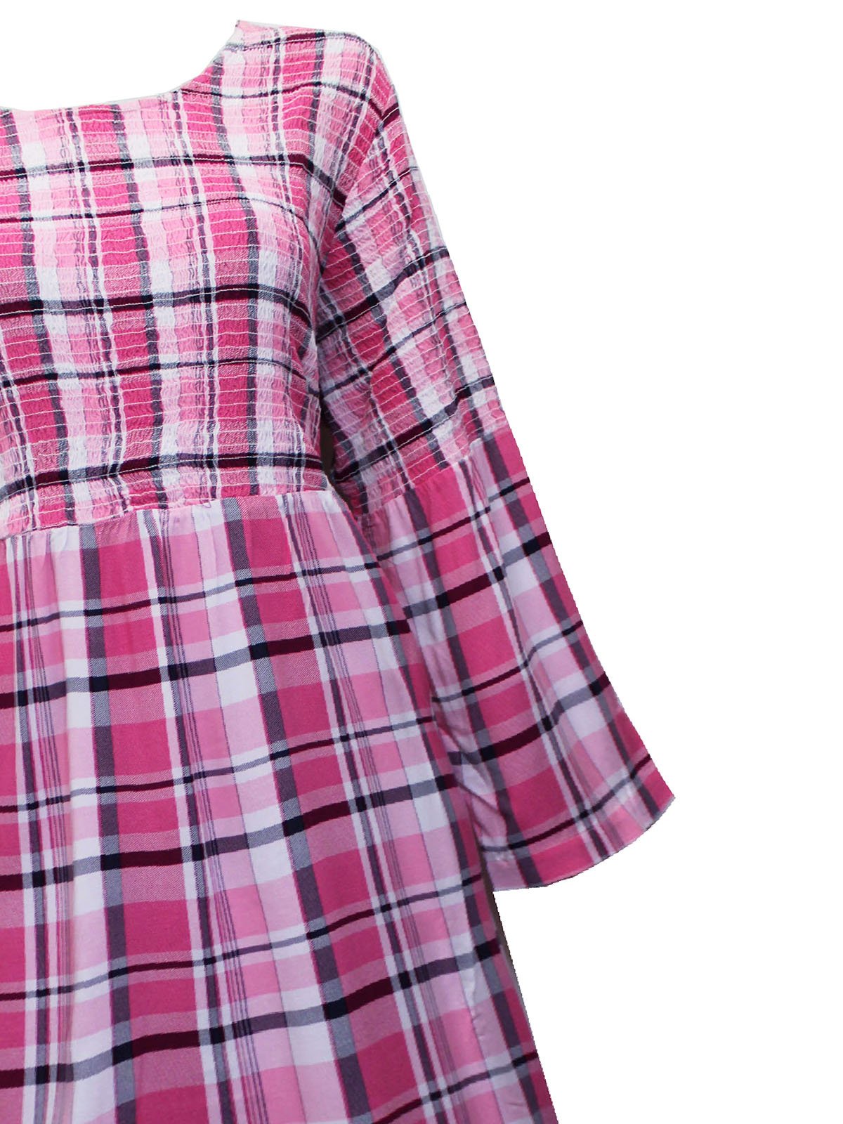 PINK Checkered Long Sleeve Smock Dress Size 20 – 30