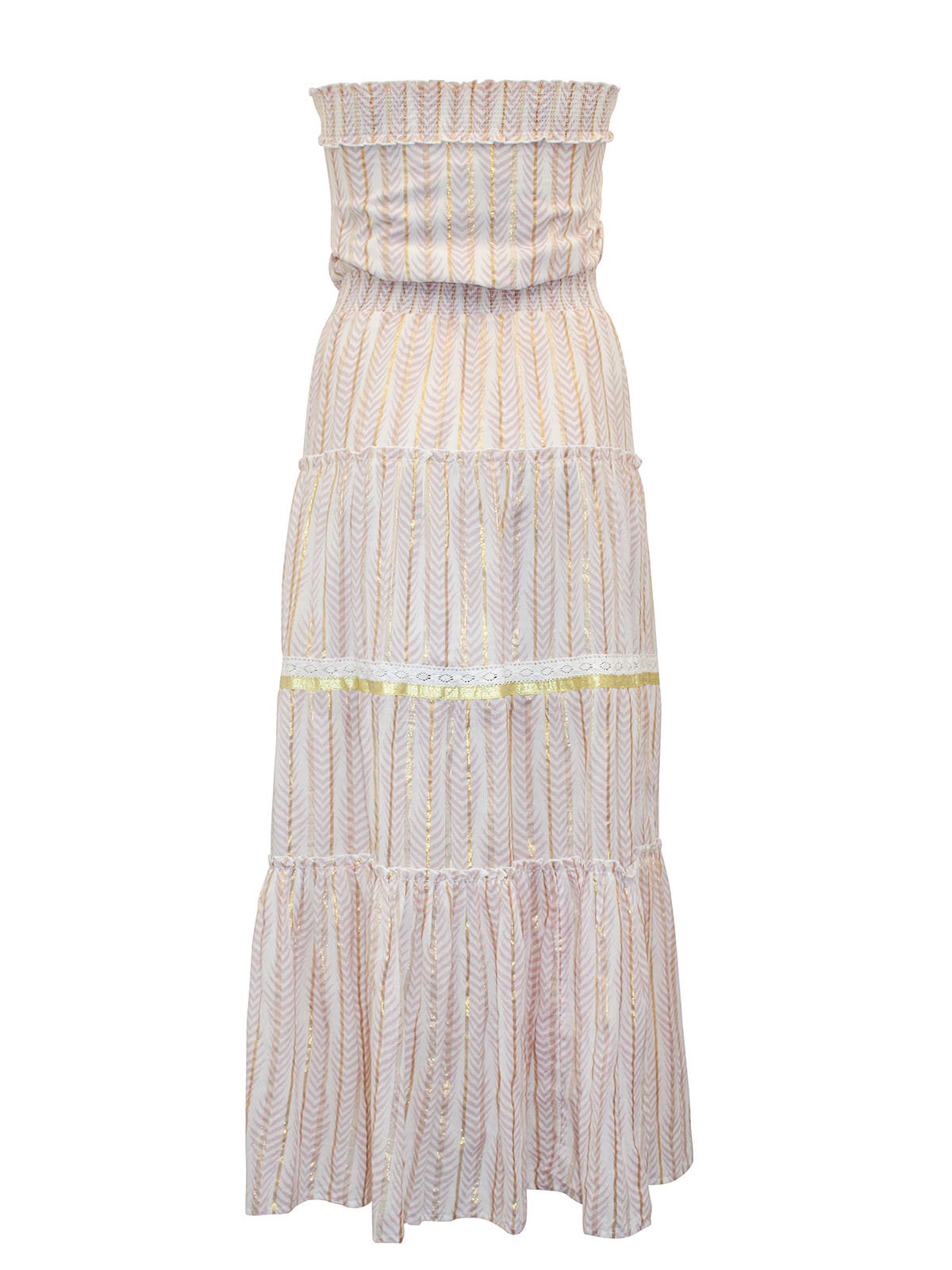 A bandeau? In summer? Perfection. Something to slip on for days full of summer fun, this dress is designed with a flowing midi skirt and metallic details.