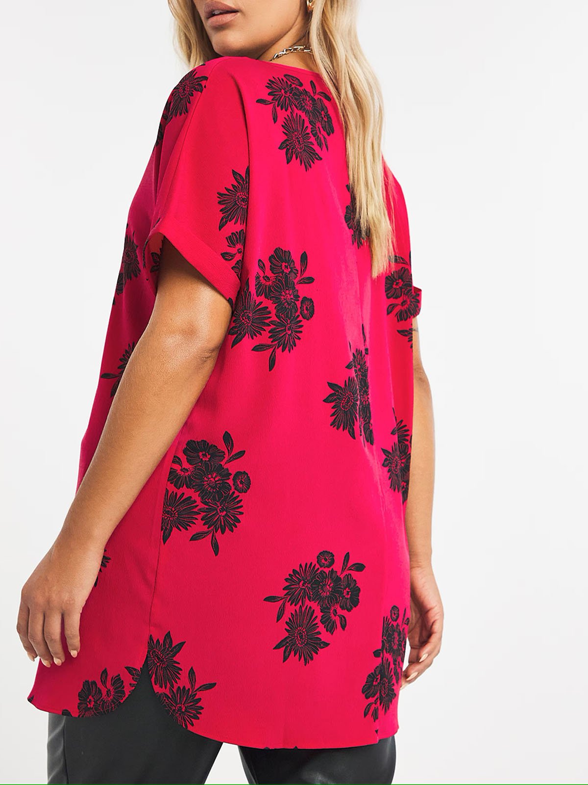 PINK Floral Print Longline Boxy Top Size 10 – 26
